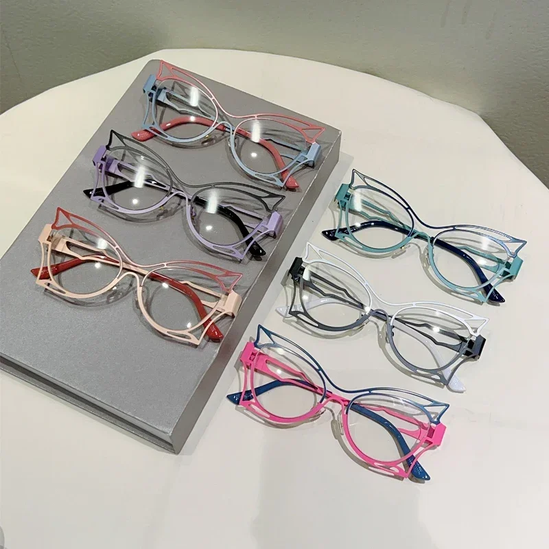 Statement frames, featherlight feel. These butterfly cat eye glasses feature a sculptural hollow metal frame that lifts the face and adds instant fashion polish. Clear blue light filtering demo lenses reduce digital eye strain while you work, stream or scroll. Swap the lenses for your prescription at any optician.
