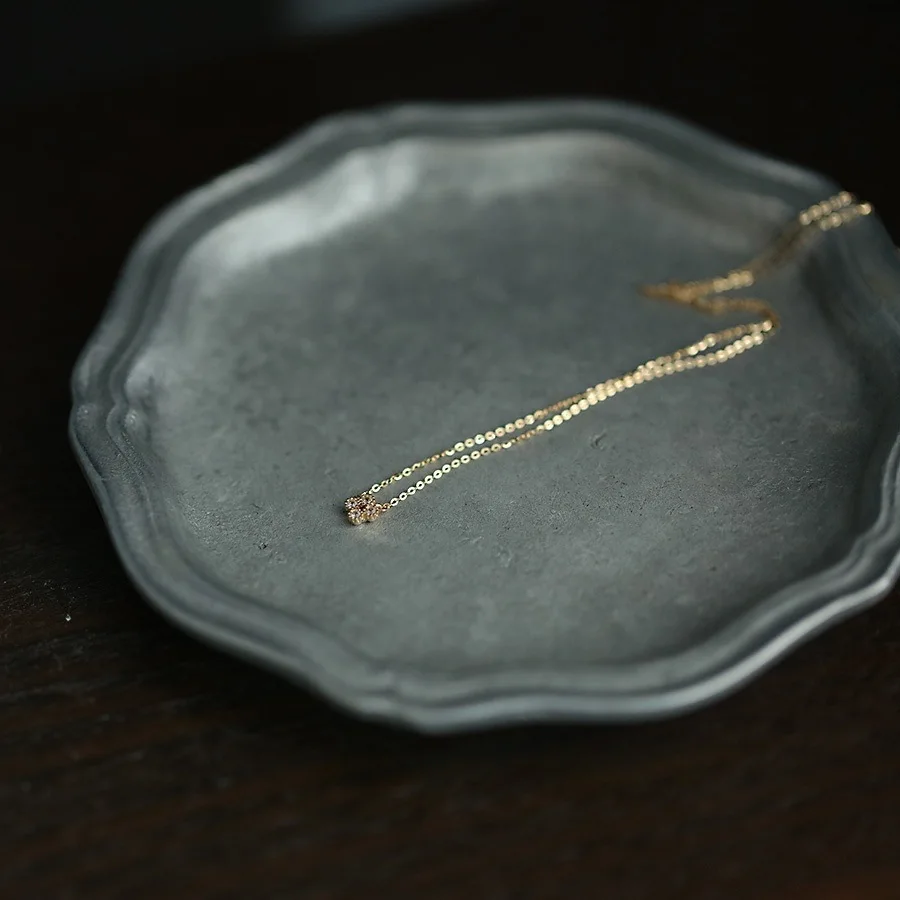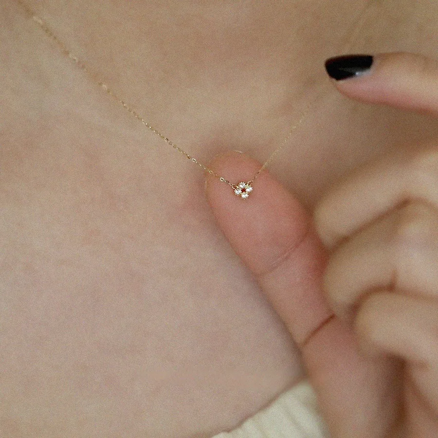 A subtle spark that goes with everything. The Petite Bloom pendant features a tiny floral cluster of clear cubic zirconia set on a delicate 14K gold-plated sterling-silver chain—minimal, refined and easy to layer.