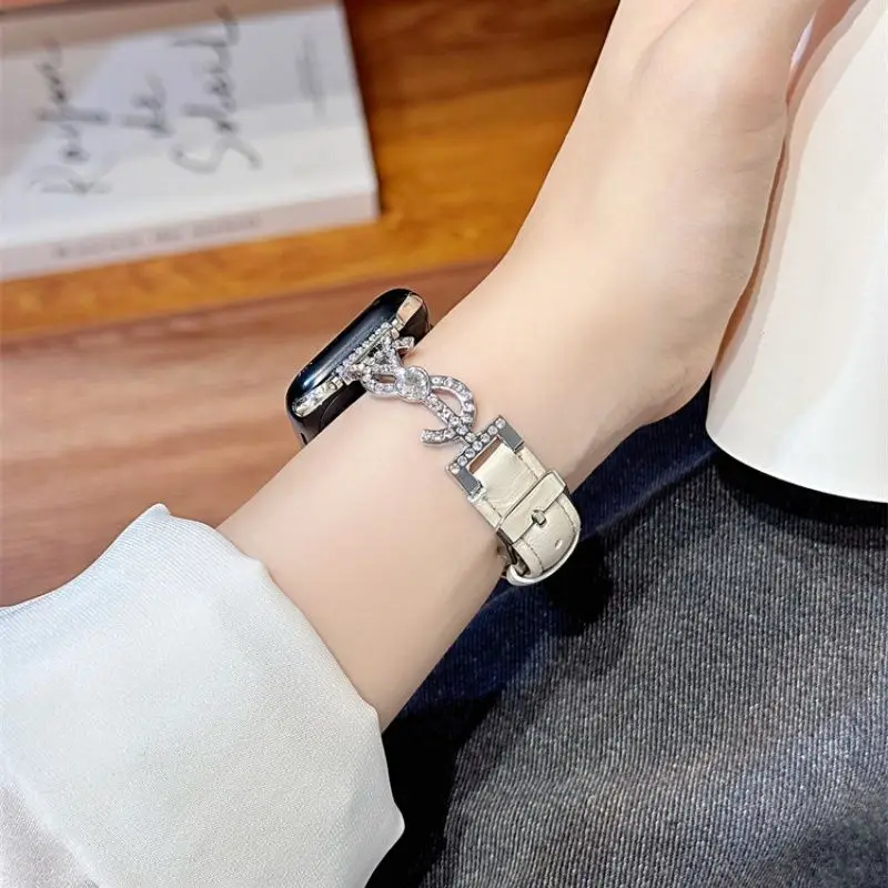 Meet the dress-up band that turns your Apple Watch into jewelry. Our handmade S-shaped rhinestone leather band pairs a soft, glossy leather strap with a crystal-studded S-link connector that catches the light with every move. It’s equal parts bracelet and watch—perfect for dinners, weddings, parties, or anytime you want your wrist to shine.